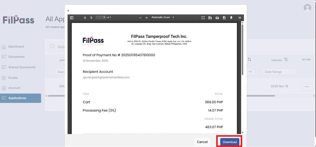 4. In this to click the “Download Proof of Payment” button.
